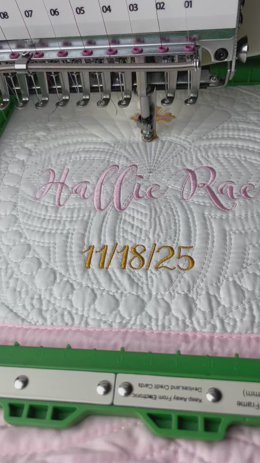 FULLY Custom Embroidered Heirloom Quilted Blanket, 6 Border color options