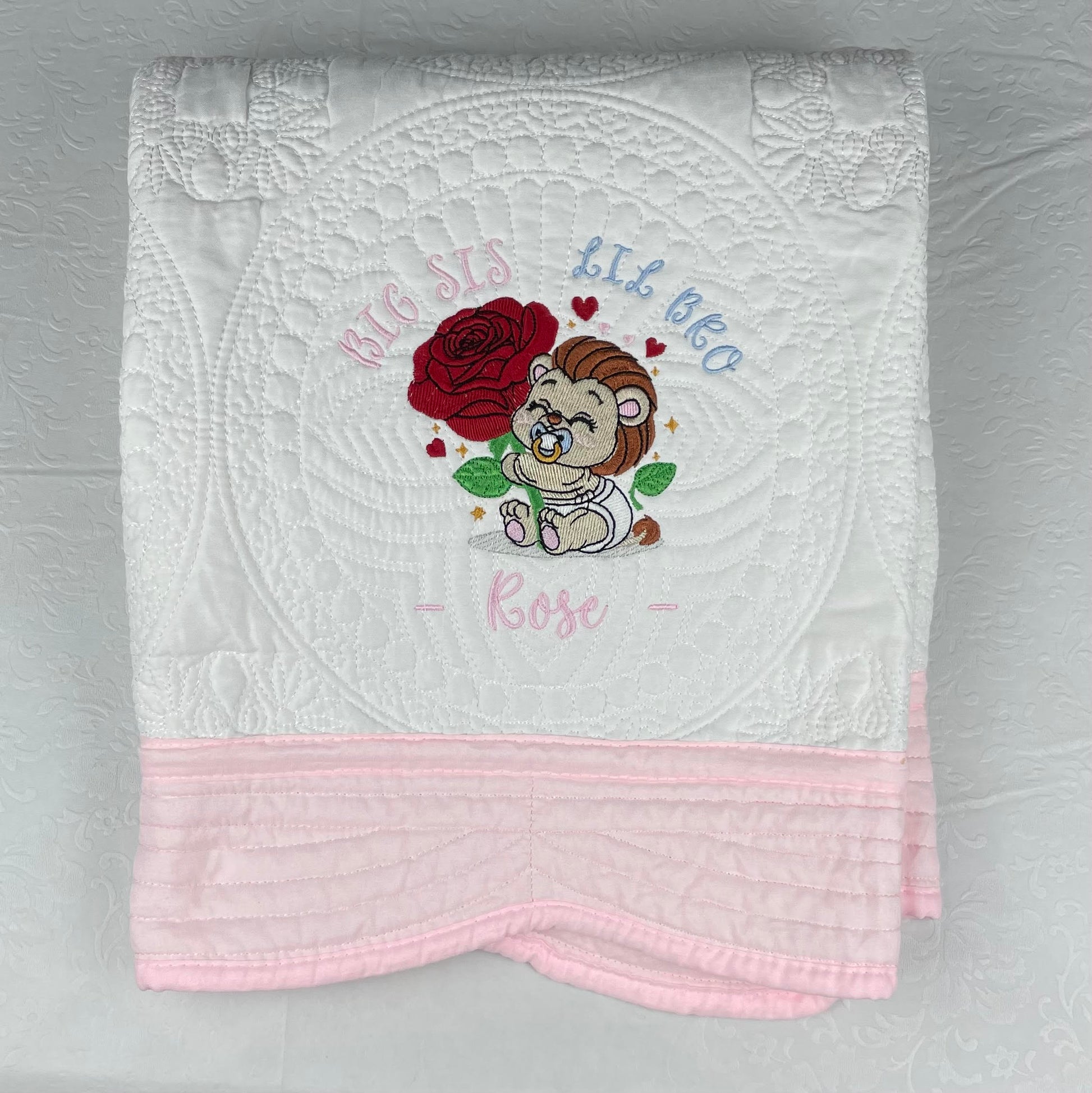 FULLY Custom Embroidered Heirloom Quilted Blanket, 6 Border color options