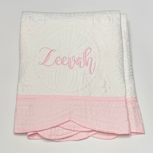 Personalized Baby Heirloom Quilt - Custom Embroidered with Name in your choice of thread color. 6 Border options: Pink, Blue, Green, Purple, Red & White
