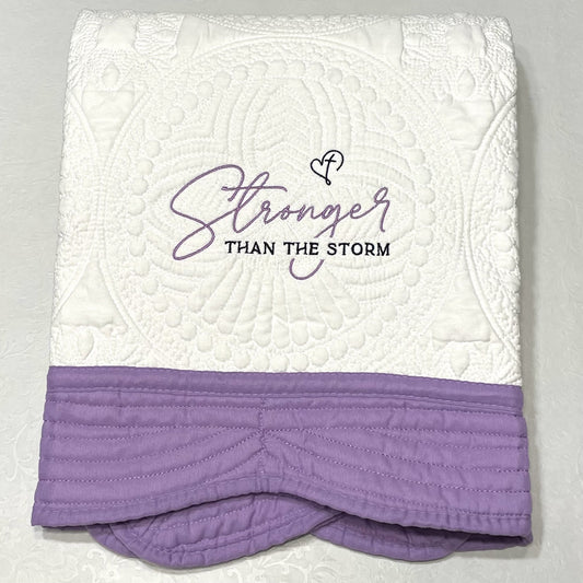 Stronger Than The Storm with Heart & Cross - Custom Embroidered Heirloom Quilt / Blankets With thread color of your choice & 6 Border color options. Encouragement, sympathy, hope, caring, bereavement, inspirational gift.